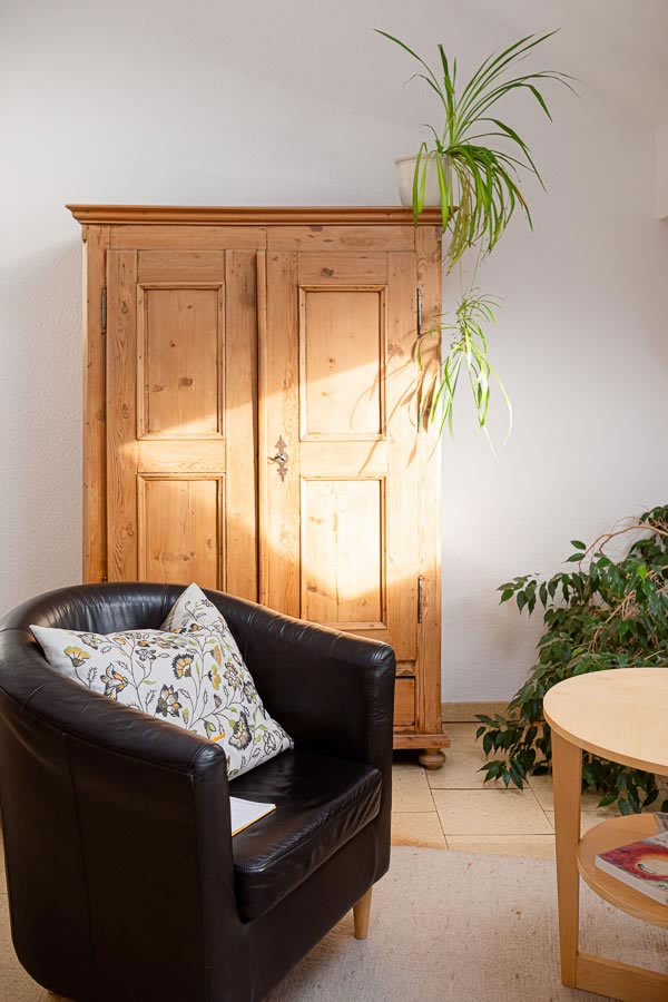 Warme Farben und ein wohnliches Ambiente, in unseren beiden Sprechzimmern und dem großen, lichtdurchfluteten Gruppenraum, sorgen für eine entspannte Atmosphäre.